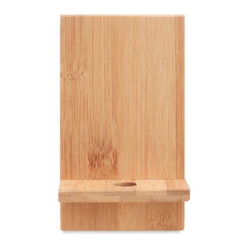 Denne telefonholder er fremstillet af bambus – et naturligt materiale med et flot og varm udtryk. Holderen er nem at samle og har en smart slids, så du kan oplade telefonen, mens den står i holderen. Du kan få holderen trykt med dit logo eller din tekst i op til 4 farver for et flot og personligt resultat.