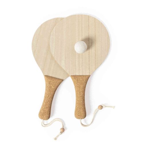 Et konkurrencepræget spil strandtennis på stranden eller en anden udendørs lokation er altid sjovt! Især med dette bæredygtige beachball-sæt. Ketsjerne er fremstillet af MDF, et stærkt plademateriale af sammenpressede træfibre, og har håndtag i kork. Sættet leveres i en flot mulepose i bomuld. Du kan få ketsjerne trykt med dit logo. Bomuldsposen kan også trykkes med dit logo eller budskab. Perfekt som en sommerlig firmagave!