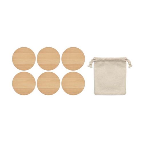 Untersetzer sind praktisch und werden oft benötigt, also perfekt als Werbegeschenk! Dieses Set enthält sechs schöne runde Untersetzer aus Bambus. Die Untersetzer sind in einem Baumwollbeutel verpackt.