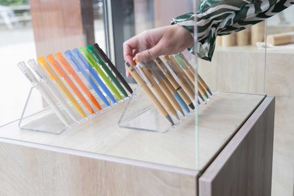 Bambus er det ideelle råmateriale til en pen. Denne græstype er robust og samtidig meget bæredygtig. Bambus vokser hurtigt og kan derfor høstes oftere. Derudover er materialet biologisk nedbrydeligt. Ud over at være bæredygtige er bambuspenne også flotte og fås i mange varianter. Vi har blandt andet kuglepenne med touchfunktion til smartphone eller tablet. Derudover tilbyder vi penne, som leveres i en pap- eller trææske – nogle gange endda sammen med en bambus blyant. Udtrykket på bambuspenne varierer fra råt til elegant og stilfuldt.