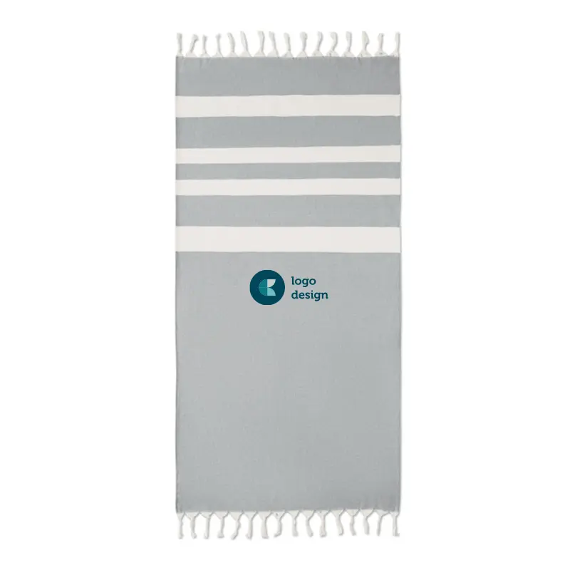 Dette store strandhåndklæde kan bruges på mange måder, f.eks. som picnic-tæppe, babytæppe eller som yoga-, strand- og fitnesshåndklæde. Håndklædet er lavet af 140 grams genanvendt bomuld og genanvendt polyester. Fås i 3 flotte farver.