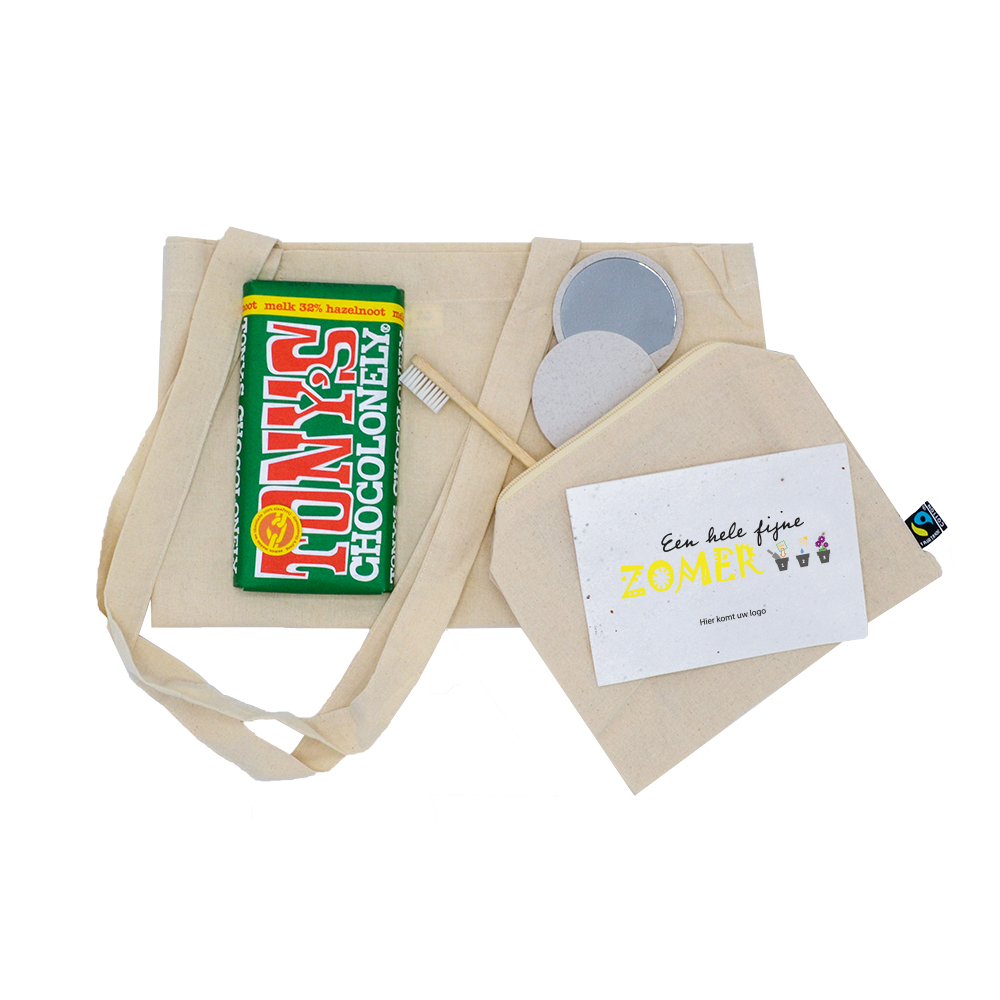 Vil du give mere end ét produkt? Se vores sommergavepakker. For eksempel Fairtrade rejsepakken, den sporty pakke eller Retulp tepakken. Eller vælg en Dopper med håndklæde, pakket i en æske af halmpapir.