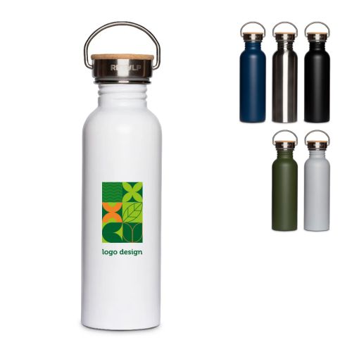 Leder du efter en baeredygtig og stilfuld firmagave? Så er denne termoflaske praecis det, du leder efter. Inspireret af den klassiske glasmaelkeflaske kombinerer dette design nostalgisk charme med moderne funktionalitet. Denne dobbeltvaeggede, laekagesikre flaske er fremstillet af 82% genanvendt rustfrit stål (RVS) og holder dine drikke kolde i op til 4 timer og varme i op til 6 timer. Perfekt til brug på farten eller på kontoret. Skruelaaget af rustfrit stål og bambus giver et ekstra miljovenligt touch.