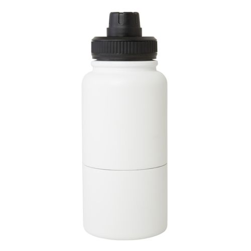 Denne flotte flaske er multifunktionel: den har nemlig også en dobbeltvægget beholder (340 ml). Her kan du selvfølgelig opbevare drikkevarer, men også små snacks. Den øverste del af flasken er en kobberisoleret termoflaske (530 ml), som holder dine drikkevarer varme eller kolde i flere timer. Flasken er fremstillet af RCS-certificeret rustfrit stål og genanvendt plast.