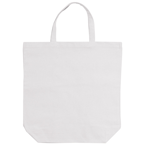 Denne rektangulære bomulds-canvas bæretaske er af høj kvalitet, nemlig 250 gr./m² canvas. Tasken har mål på 41,5 x 43 x 12 cm og en bund, der gør den ekstra robust. Kombineret med de stærke korte hanker er tasken ideel til en lang dag med shopping på en messe, konference eller event.