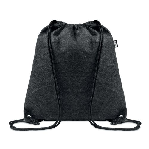 Denne smukke mørkegrå rygsæk skiller sig garanteret ud! Den er fremstillet af filt lavet af genanvendte PET-flasker. Det fremgår også af etiketten på siden af tasken. Rygsækken har en polyester snørelukning. Taskens størrelse er 33,5 x 42 cm, og den kan bære op til 5 kg.