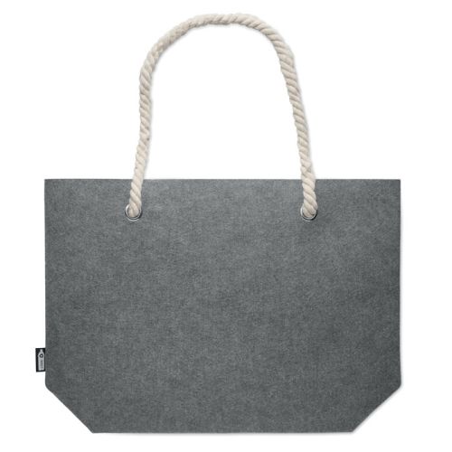 Denne rummelige strandtaske er lavet af robust RPET-filt, et bæredygtigt materiale fremstillet af genbrugte PET-flasker. Med en filt tykkelse på 2 mm er tasken både solid og samtidig let. Tasken fås i 3 farver og har robuste snorhåndtag, der sikrer komfortabel bæring. Perfekt til en dag på stranden eller til indkøb.