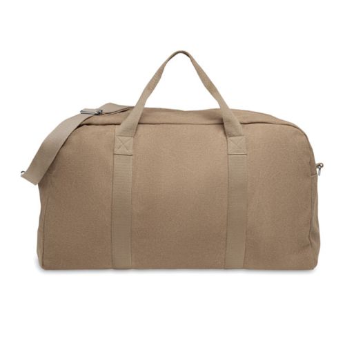 Denne bæredygtige rejsetaske er fremstillet af genanvendte materialer: 60% bomuld og 40% polyester. Med en vægt på 450 gr./m2 er det en solid og slidstærk taske. Du kan vælge mellem 4 forskellige farver. Ideel til en sportsdag, en weekendtur eller som giveaway til events. Den justerbare skulderrem i bomuld kan nemt klikkes af – praktisk og komfortabel.