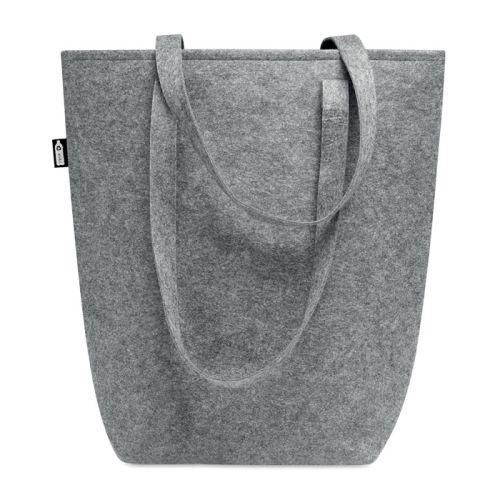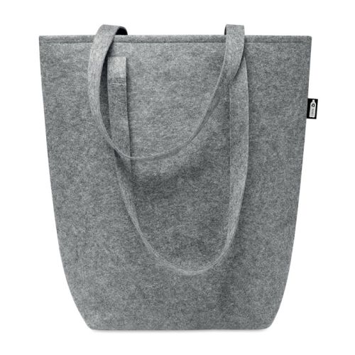 Med denne filtbærepose stjæler dine relationer garanteret opmærksomheden! Tasken er ideel til daglige indkøb eller på en udflugt. Tasken har lange hanke og en firkantet bund, så der er plads til endnu mere. Kombinationen af filt og genanvendt plast giver tasken et robust, slidstærkt og bæredygtigt udseende.