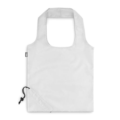 Mangler du plads? Så er denne sammenfoldelige indkøbstaske den perfekte løsning. Fold tasken ind i hjørnet, træk i snoren, og tasken er pakket sammen til et praktisk format, du nemt kan tage med. Tasken er fremstillet af genanvendt plast og måler 38 x 40 cm. Du kan få tasken trykt på både for- og bagside i 1-4 farver. En praktisk firmagave til hverdagsbrug!