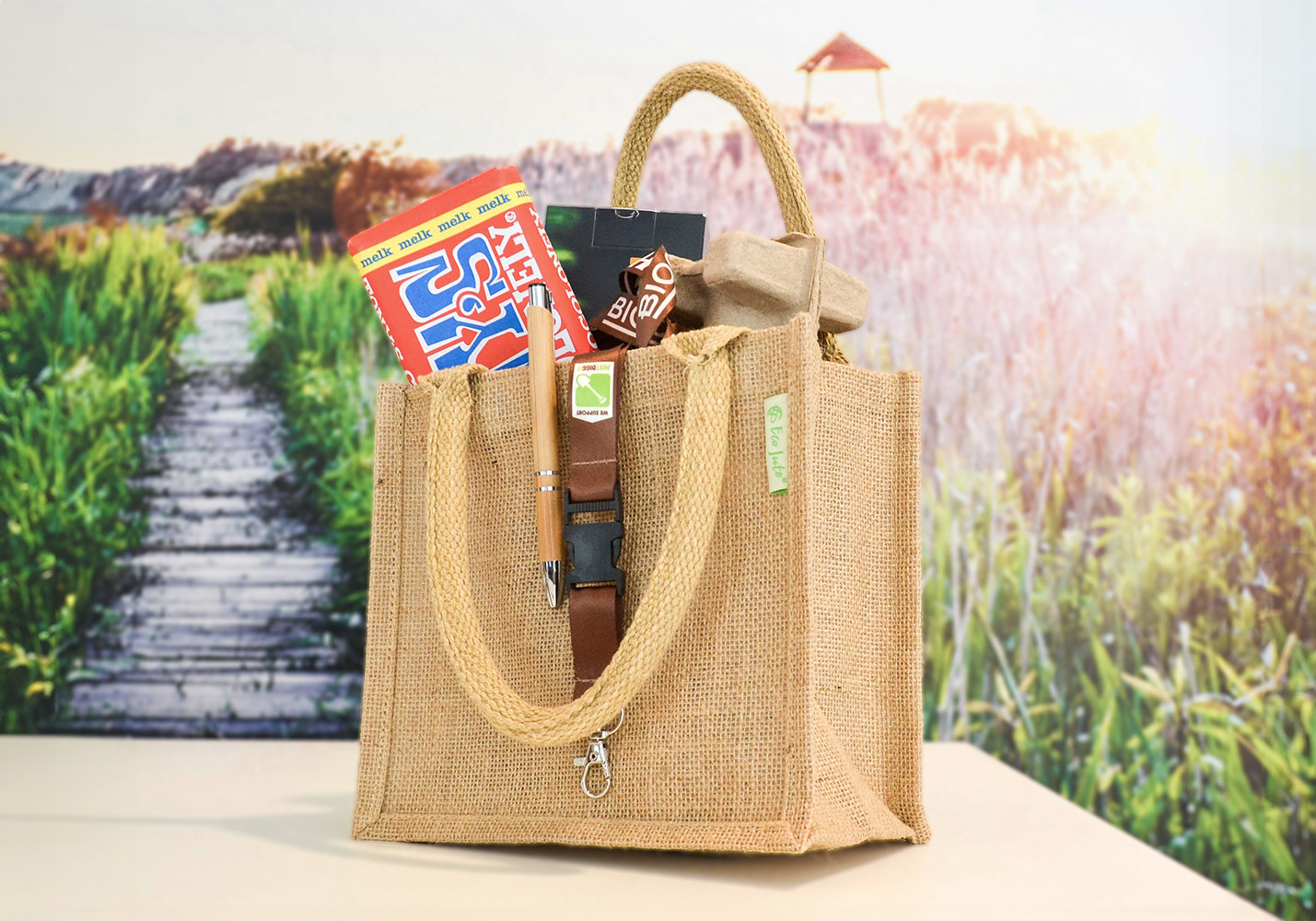 Juteposer er ægte allroundere. De er robuste, bæredygtige og har samtidig et flot, naturligt udtryk. Vores øko-juteposer er fremstillet af plantefibre, som spindes til stærke tråde. Poserne kan trykkes med dit logo eller tekst og er derfor en effektiv og attraktiv firmagave. Har du spørgsmål? Så tøv ikke – vores produktspecialist hjælper dig gerne!