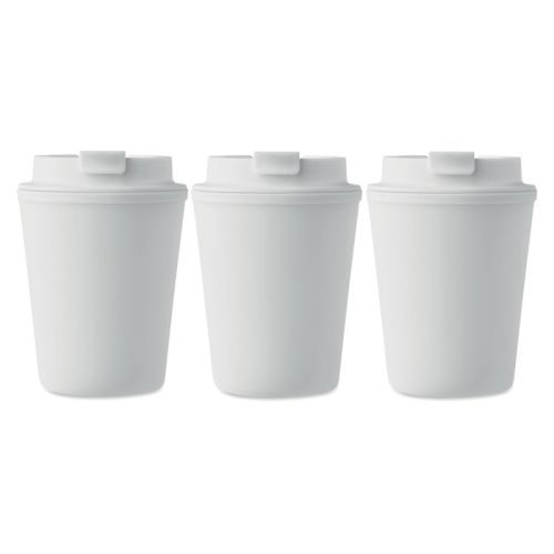 Denne dobbeltvæggede drikkekop har et superstilrent udtryk og er ideel til at holde kaffe eller te dejligt varm på farten. Koppen er fremstillet af genanvendt PP og har et praktisk sugerørslåg. Koppen rummer 300 ml og fås i 6 forskellige farver.