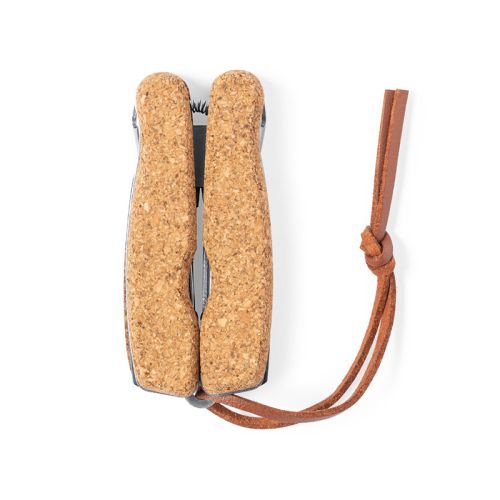 En multitool er uundværlig på ethvert kontor og i ethvert hjem. Også på farten er en multifunktionel lommekniv utrolig praktisk. Denne lommekniv har hele 12 funktioner, herunder kniv, skruetrækker med flad- og stjerneskruetrækkerbits, oplukker og tang. Multitoolen er fremstillet af rustfrit stål og kork og har en læderrem.