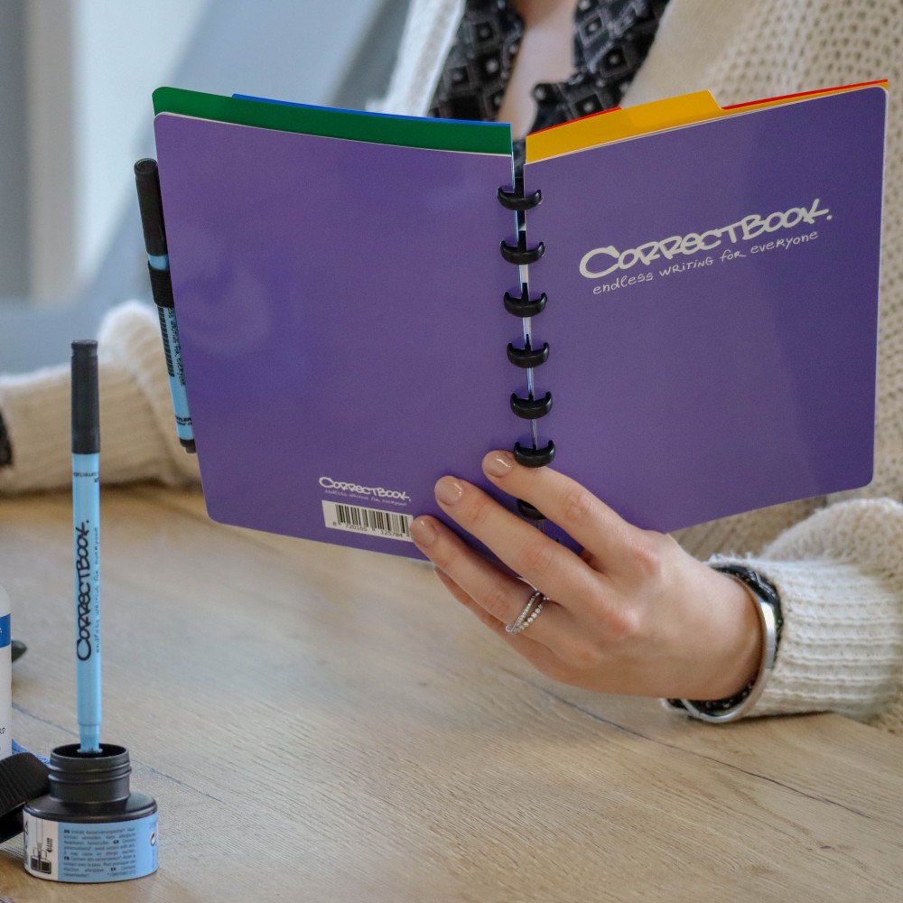 Hvis du leder efter en praktisk firmagave, som samtidig bidrager til en særlig mission, er Correctbook et sikkert valg. Correctbook fås i forskellige størrelser og farver. Du kan endda få trykt dit eget design på notesbogen. Perfekt som bæredygtigt reklameprodukt!