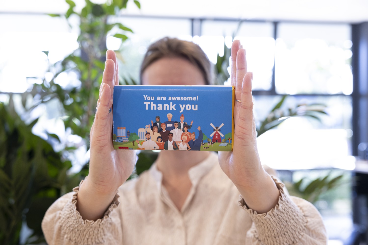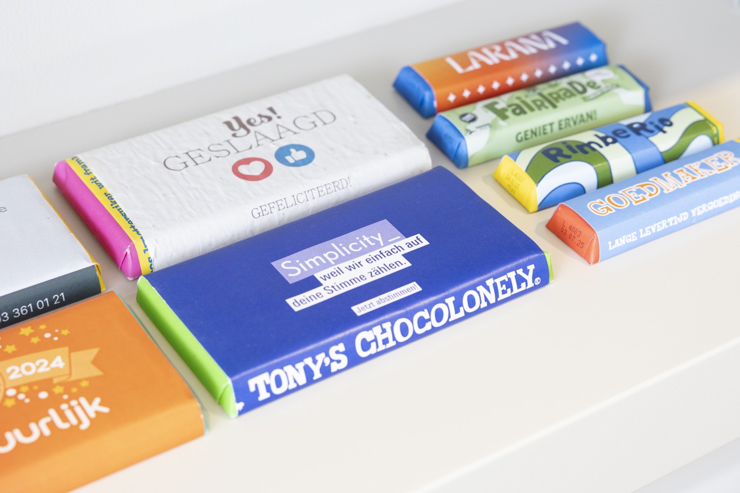 Chokolade fra Tony's Chocolonely er perfekt som firmagave eller som en tak til dine medarbejdere. Uanset hvilket budskab du ønsker at formidle, er der mange muligheder med en personlig wrapper. Når du har afgivet din bestilling, modtager du en skabelon fra os. Denne kan du designe helt efter dine ønsker. Wrapperen trykkes i fuld farve, så dit budskab vil helt sikkert skille sig ud.