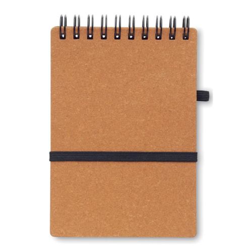 Notesbogen fås i sort, grå og brun. Du kan få både for- og bagsiden samt pennen trykt i 1 til 4 farver. Med dit eget logo eller budskab får du et ideelt stykke promoveringsmateriale!