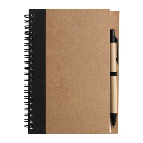 Det er altid praktisk at have en notesbog i lommen! Sammen med en pen bliver det selvfølgelig endnu bedre. Denne notesbog med kuglepen er fremstillet af miljøvenlige og biologisk nedbrydelige materialer. Dine kunder og/eller relationer vil helt sikkert sætte pris på dette bæredygtige valg!