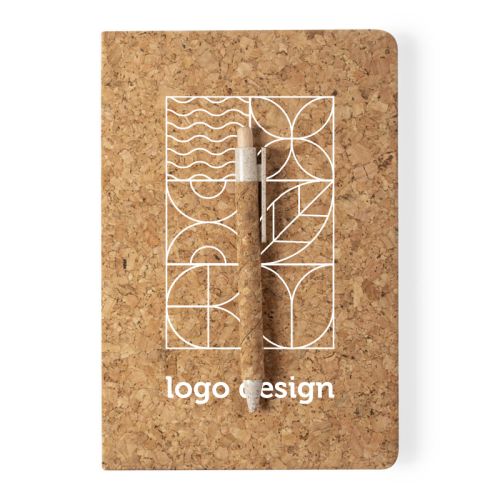 Notesbog i kork med kuglepen