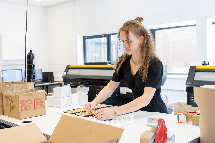 Hos os går det hånd i hånd. Hvordan kan det lade sig gøre? Takket være gode aftaler med vores leverandører, smart lagerstyring og effektiv logistik. På den måde kan vi levere bæredygtige gaver hurtigt og effektivt. Med vores eget trykkeri kan vi levere populære produkter som Dopper-flasker, frøpapir og notesbøger til skarpe priser og med kort leveringstid.