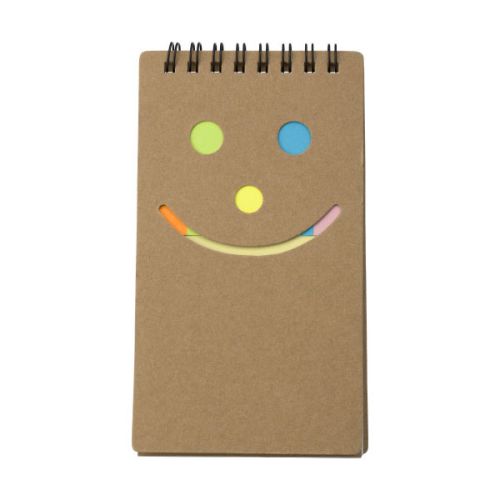 Få dine relationer til at møde dagen med et smil med denne sjove notesbog med en glad smiley! Denne notesbog i karton indeholder ca. 150 selvklæbende memoblade, når du åbner den, og på bagsiden finder du også en lille notesblok. Et alsidigt og praktisk produkt, som er uundværligt på kontoret!