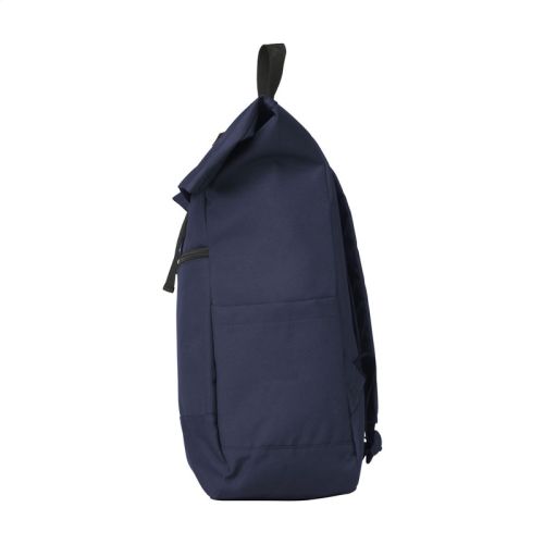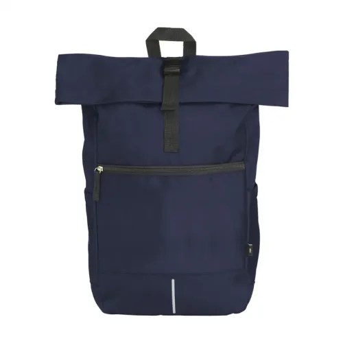 Tag afsted med denne robuste og vandafvisende rygsæk fremstillet af genanvendte PET-flasker. Rygsækken har et stort hovedrum med et særligt rum til sikker opbevaring af din laptop (op til 15,4 inch). Tasken har en praktisk rolltop-lukning med kliksystem og en kapacitet på ca. 20 liter. Den er behagelig at bruge takket være den polstrede ryg og de justerbare, polstrede skulderstropper, som sikrer optimal bærekomfort. Derudover har tasken to sidelommer og en lynlåslomme foran med reflekterende detalje – ideel til opbevaring af småting.