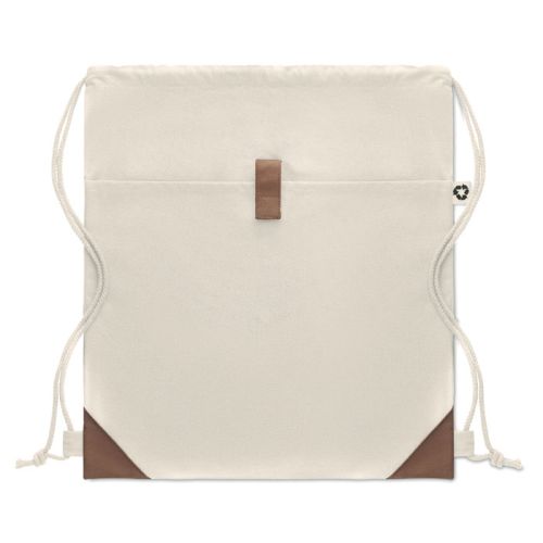 Vil du overraske dine kunder, samarbejdspartnere eller medarbejdere med en ekstra bæredygtig og trendy rygsæk? Så er denne model et oplagt valg! Materialet består af 50% bomuld og 50% genanvendt bomuld. De kontrasterende detaljer giver et stilfuldt udtryk. Rygsækken måler 38 x 42 cm og kan lukkes med en praktisk snørelukning.