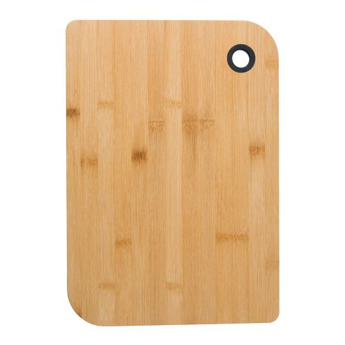 Skærebrættets mål er 40 x 28 x 1 cm. Tommelfingerhullet føles behageligt takket være silikoneringen og er ideelt til at hænge brættet op. Du gør skærebrættet til en personlig firmagave med en gravering (60 x 30 mm) af dit logo eller din tekst på forsiden. På den måde glæder du modtageren og får samtidig den ideelle promovering!