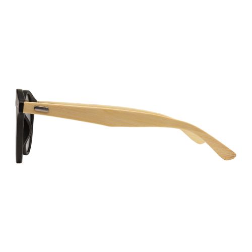 Disse smarte eco solbriller har et moderne rundt stel og bambusarme. Stellet er mat sort, og glassene er sorte med UV400-beskyttelse (i henhold til europaeiske standarder). Begge arme kan trykkes med dit logo eller tekst i 1-4 farver. Overrask dine relationer eller medarbejdere med disse trendy solbriller med et baeredygtigt touch!