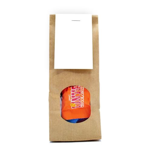 Denne gave er perfekt at dele ud på Sundhedens dag. Ideel som en original tak til sundhedspersonale! I den brune kraftpose finder du hele 10 lækre Tiny Tony’s i en blanding af smagsvarianter. Posens lukkes med et full colour kort med dit eget design.