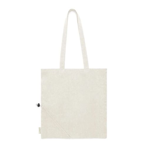 Denne praktiske indkøbspose kan nemt foldes sammen til en lille pakke takket være den påsyede opbevaringslomme. En så kompakt taske er naturligvis ideel at have med på farten, perfekt til uventede besøg i for eksempel supermarkedet. Tasken er fremstillet af genanvendt bomuld og kan bære op til 6 kg.