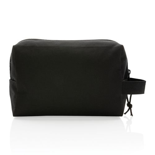 Toilettasken har et stilrent design og fås i sort. Du kan få den trykt på for- og bagsiden i 1-6 farver. En flot og funktionel firmagave!