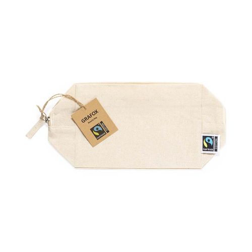 Denne toilettaske er fremstillet af Fairtrade-certificeret bomuld. Mere baeredygtigt bliver det næsten ikke! Overrask dine relationer eller kunder med denne robuste toilettaske i naturfarve. Perfekt til rejser eller til brug derhjemme. Få trykt dit logo på og skab et baeredygtigt og mindeværdigt indtryk!
