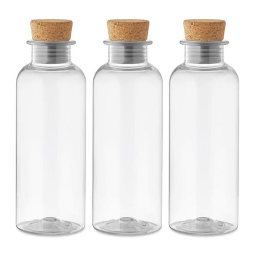 Denne drikkeflaske af Tritan Renew™ med korklåg fås i tre farver: blå, grå og transparent. Den består af 50 % genanvendt plast og er produceret ved hjælp af ISCC-certificeret massebalance. Det gør den til en bæredygtig tørstslukker! Flasken har en kapacitet på 500 ml og tåler opvaskemaskine.
